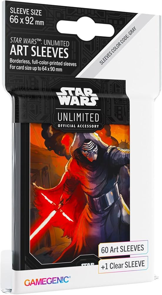 These high-quality, full color printed, matte, and officially licensed Star Wars: Unlimited Art Sleeves are a must-have accessory for every fan of the franchise. They are available in four iconic designs. The Art Sleeves are an amazing eye-catcher on every gaming table! Optimized for a vast variety of TCGs and LCGs, the Star Wars: Unlimited Art Sleeves provide a great shuffle feel and a comfortable haptic experience. They are produced with a matte back and clear front foil. One pack contains 60 Art Sleeves and 1 clear sleeve for the leader. The Star Wars: Unlimited Art Sleeves can also be used for all standard-sized card games!